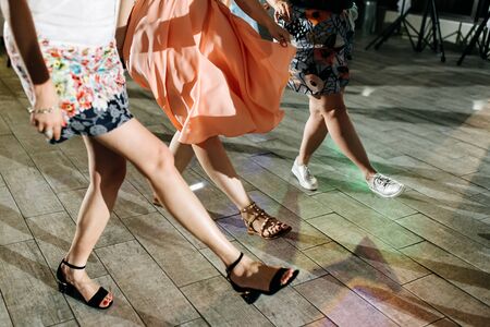 feet of people dancing on club party. unrecognizable