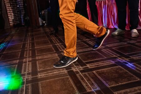 Legs of dancing people at the party.