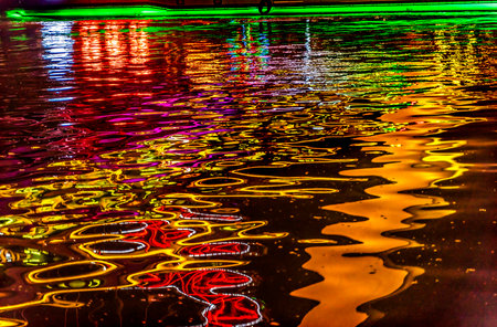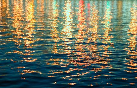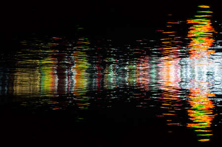 Texture and background image of the colour lights reflection on the water surface.