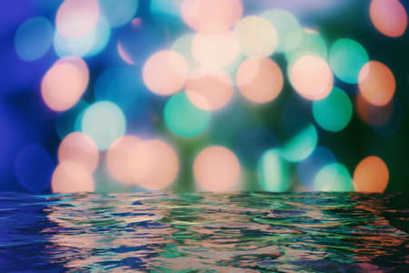 abstract background with bokeh defocused lights and water surface