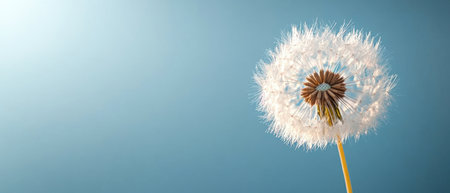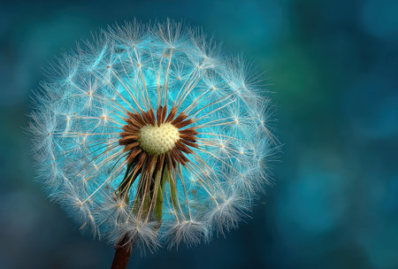 The fragile beauty of a dandelion flower on a vibrant blue backdrop, offering a clean and minimalistic image with space for text