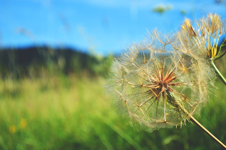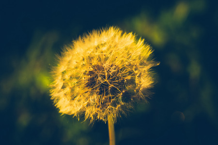 Close up of a cap of white dandelion, vintage natural background.