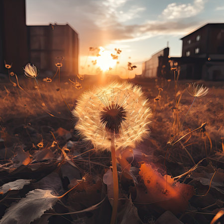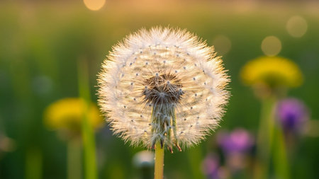 AI Generated. Dandelion Seed Head at Sunset Peaceful Nature Scene