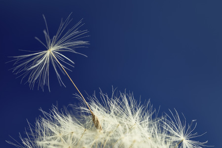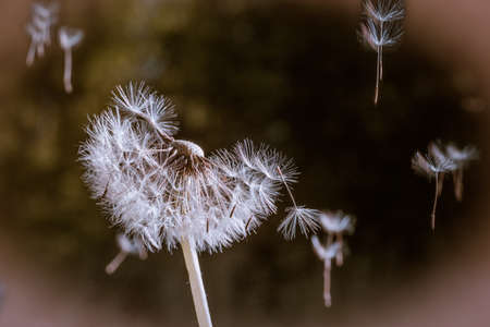 Dandelion seeds blowing in the wind. Macrophotography of dandelion seeds.