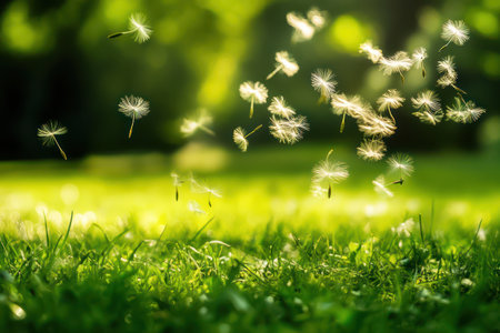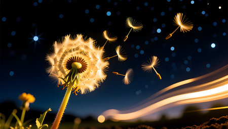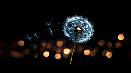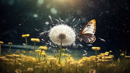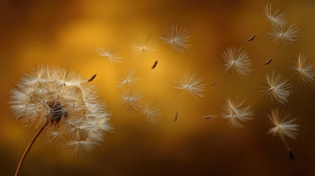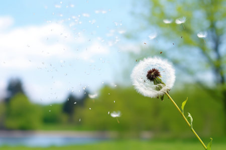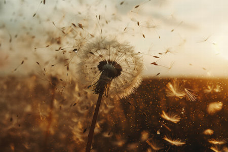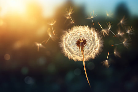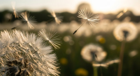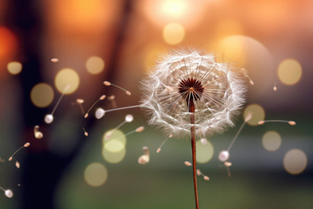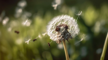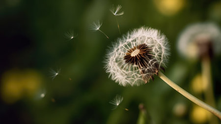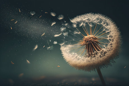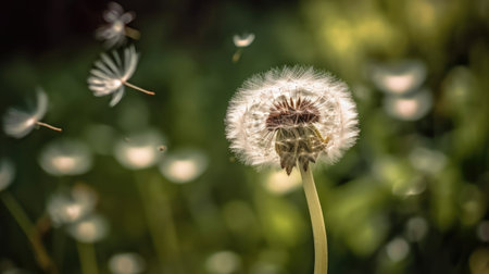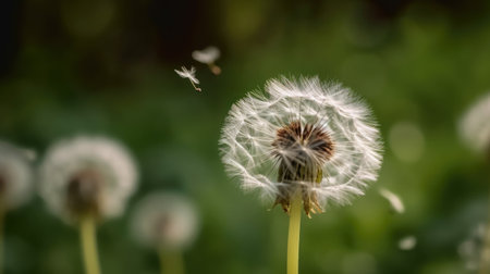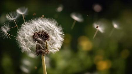 Soft dandelion seed blowing in summer wind generated by artificial intelligence