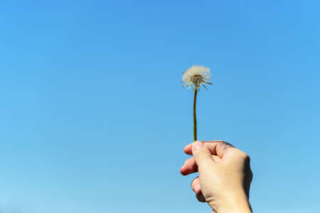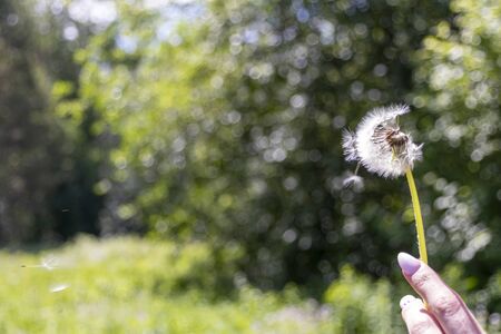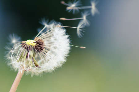 Dandelion seed came off the flower. Copyspace. The concept of freedom. Detailed photo.