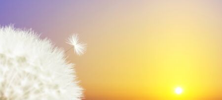 National Asthma and Allergy Awareness Month. Fluffy dandelions glow in rays of sunlight at sunset.