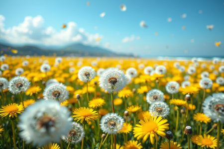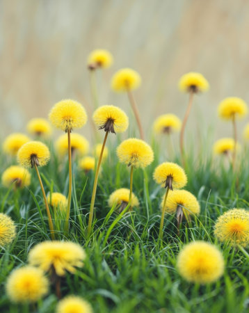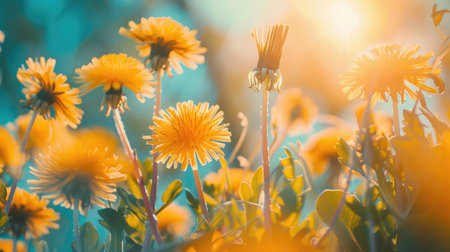 AI Generated. dandelions yellow flowers bloom green grass warm weather
