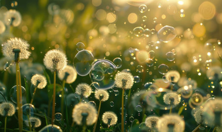 Dandelions and soap bubbles in the air