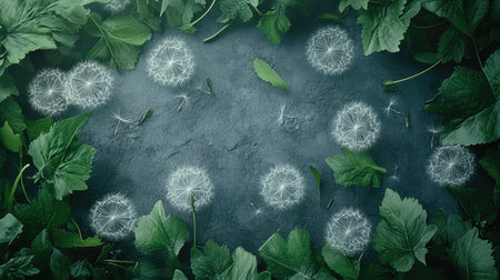photorealistic dandelion leaves illustration style nature, plant green, detail botanical photorealistic dandelion leaves