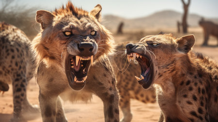 a group of angry hyenas at the dessert
