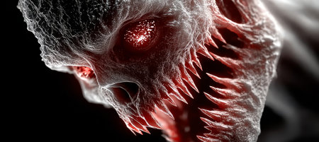 Ferocious monster teeth emerging from the mist
