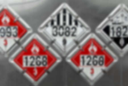 Blur Image - USDOT Hazardous Materials Transportation Placards on rear of a Fuel Tanker