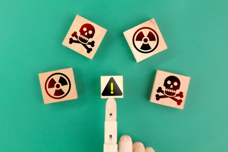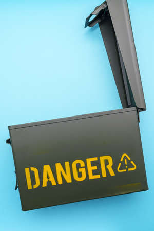 wooden box with hazard, toxic and warning signs concept hazard sign Danger Concept
