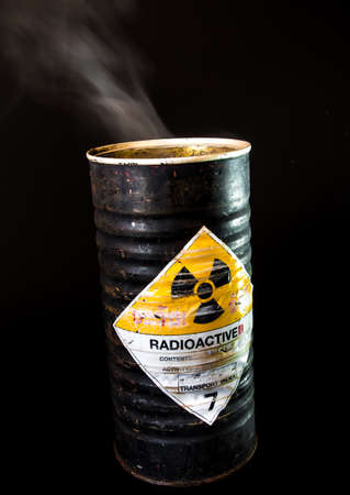 Smoke in the old cylinder container of radioactive material