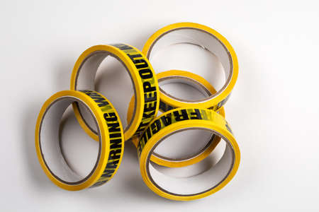 Warning, Keep out and Fragile tapes on a white background