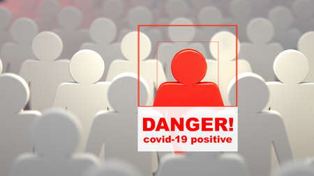 Corona Covid-19 positve tested person stand out from the crowd. different creative idea concept, dangerous man standing out of crowd - 3d rendering