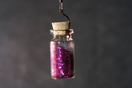 Close up of glass Christmas tree decoration hanging on a balcony. Toned.