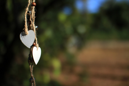 Best friends necklace shoot outside in a summer day closeup. Selective Focus