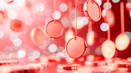 Celebration showing vertical spiral of colorful metallic confetti and streamers falling against a bokeh background of warm golden lights celebration event.