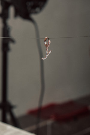 Clothes pins on a clothes line rope holding nothing. Space for you text.