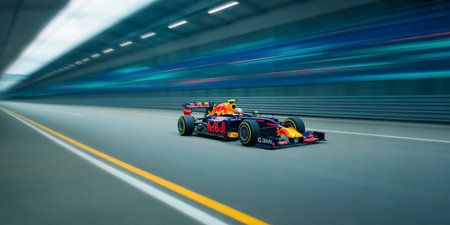 Formula 1 racing car demonstrating high speed on a blur motion race track