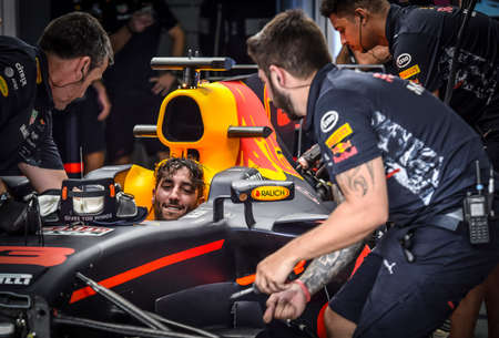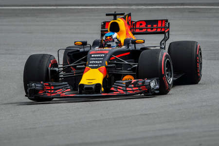 SEPANG, MALAYSIA - SEPTEMBER 30, 2017 : Daniel Ricciardo of Australia and Red Bull Racing during the Malaysia Formula One (F1) Grand Prix at Sepang International Circuit (SIC).