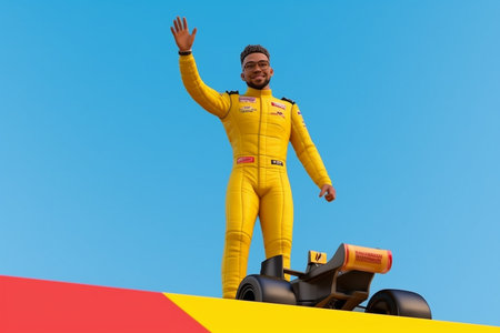 An F1 Formula One driver celebrates the Grand Prix victory. beautiful Generative AI AIG32