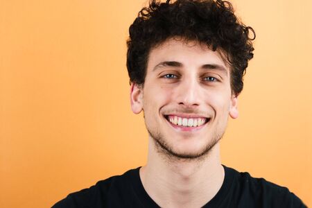 Portrait of handsome bearded man in casual clothes smiling and looking at camera