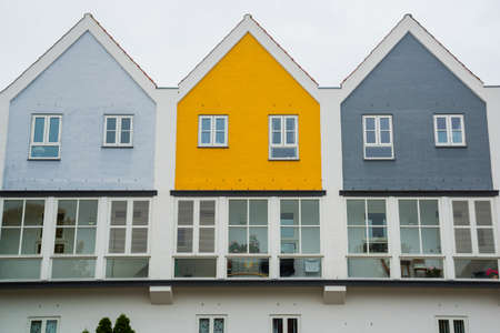 Viborg, Denmark, July 2018: Small colorful Scandinavian houses in Denmark