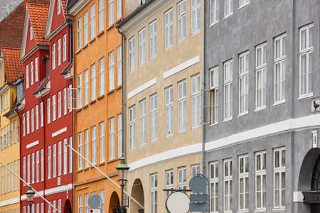 Traditional colorful facades in Copenhagen city center. Nyhavn area. Denmark