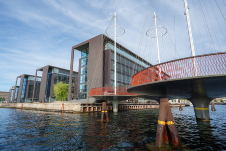 Copenhagen, Denmark - September 23, 2016: Modern cyclist bridge Bryggybroen and modern residential buildings