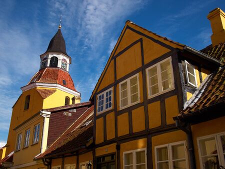 Classical old bell tower landmark of the old city Faaborg Denmark