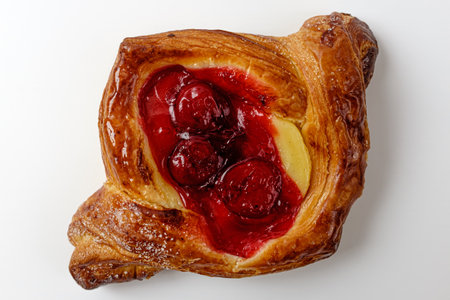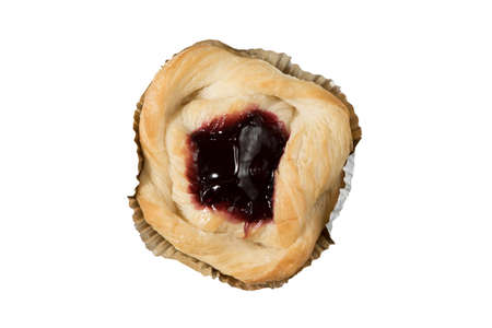 Delicious Danish pastry with apple and blueberries, isolated on white background. Top view.