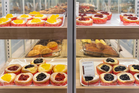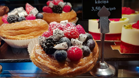 Modern patisserie display tempting cakes, croissants, and pastries to satisfy your sweet cravings