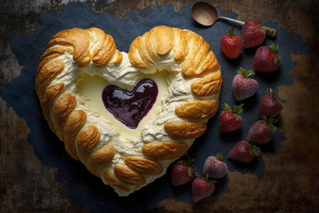 heart-shaped danish pastry with a fruit filling, surrounded by cream cheese, created with generative ai