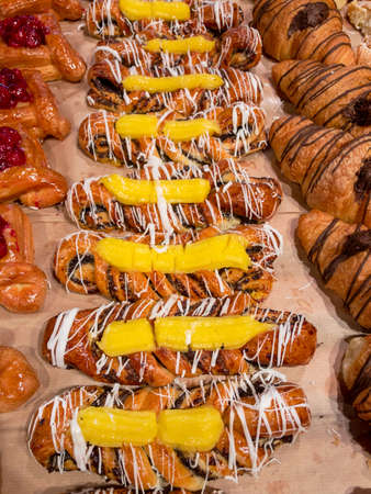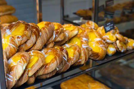 Fresh pastries for sale in a bakery