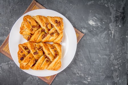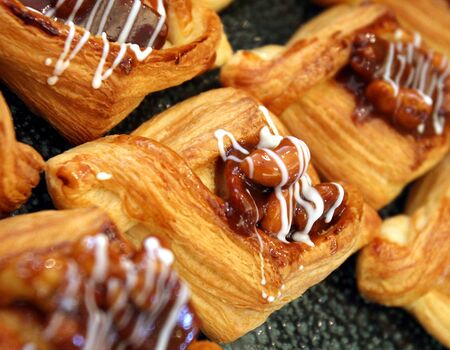 Caramel nut danish pastries with nut filling