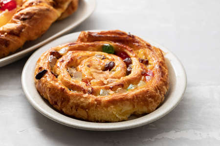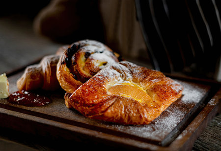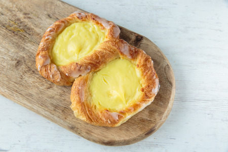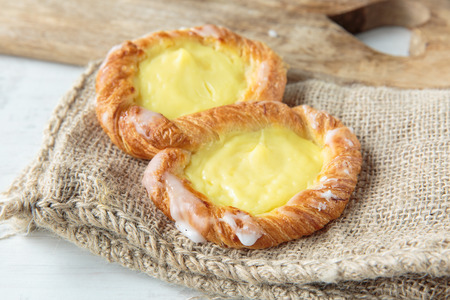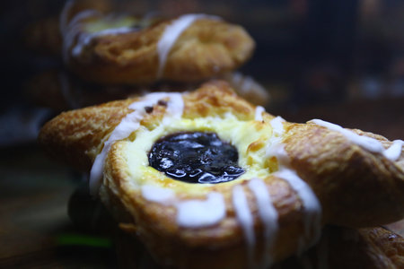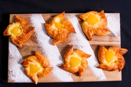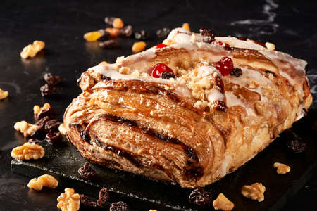 Closeup of freshly baked tasty danish.