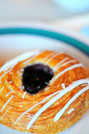 Blueberry glazed danish dessert pastry with icing and powdered sugar