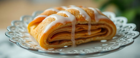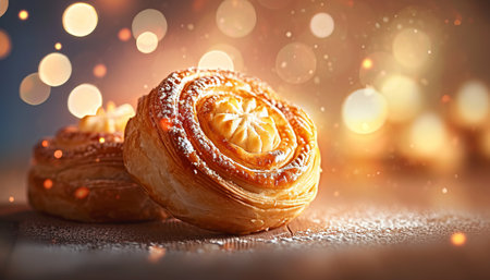 floral pattern on flaky puff pastries and turnovers, created with generative ai
