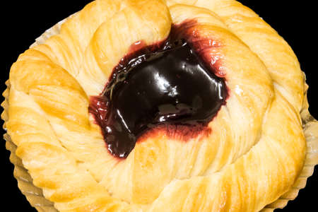 Cherry and cream cheese danish pastry isolate on black