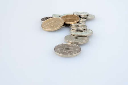 Two Denmark coins lie on isolated white background Denomination is 1 krone (crown)