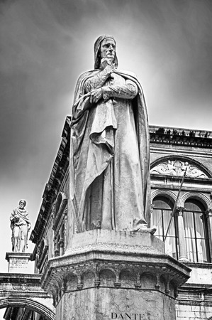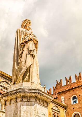 The statues of the famous italian poet Dante Alighieri in Lords Square, Verona