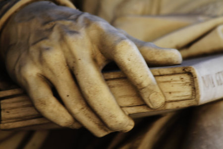 Stone statue of male figure standing outdoor. Concepts: historical monument, contemplation and wisdom, heritage preservation. AI Generative.