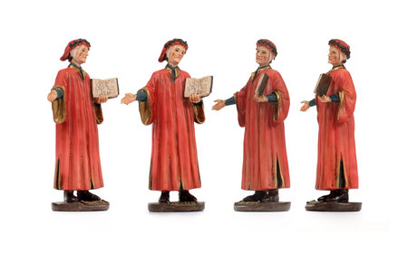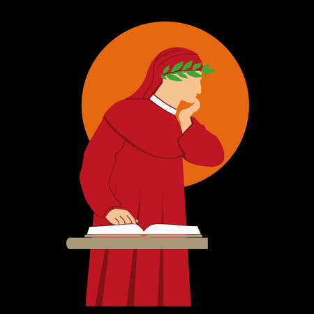 Ceramic souvenir figure of the famous Italian poet in the red dress. The inscription in English means the name of the poet Dante