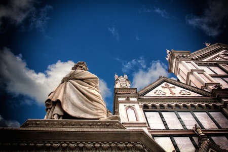 Dante's statue in front of Santa Croce church - Florence, Italy