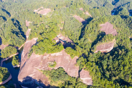 aerial view of danxia landform in tonggu county, jiangxi province, China