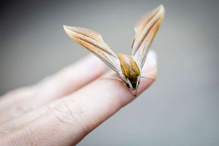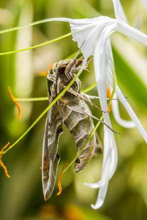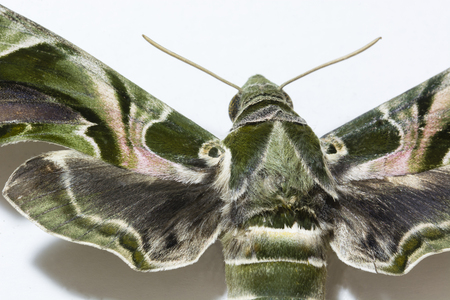 Macro Photography of Oleander Hawk-Moth or Army Green Moth Isolated on White Background