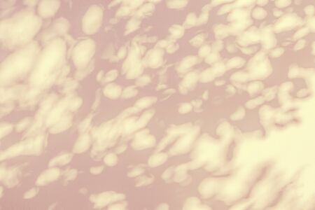 Abstract rose gold light bokeh of natural leaves shadow background of tree branch falling on white concrete wall texture, nature art on wall, pink rose gold shadow on white background